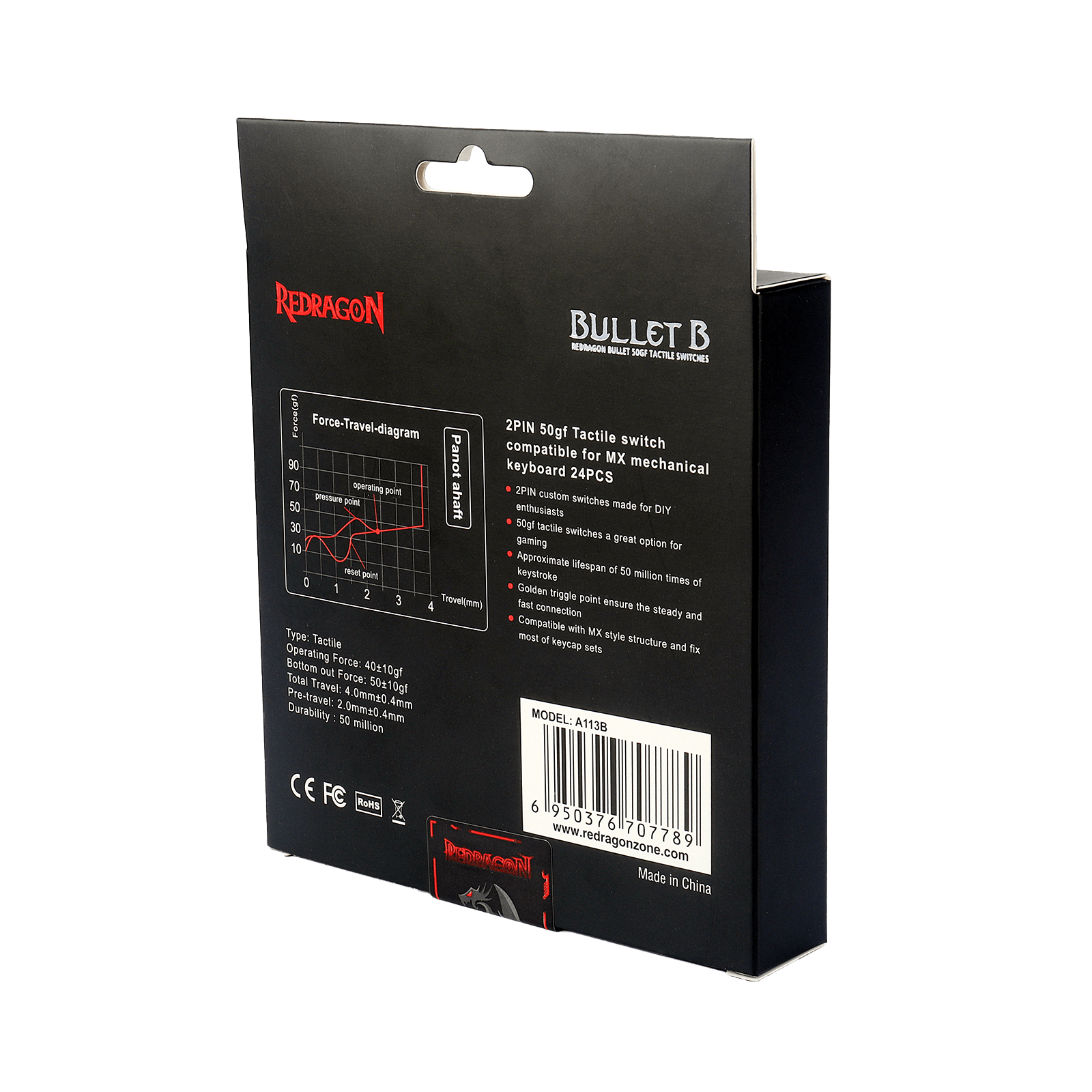 Redragon Custom Switch - A113 Bullet series customizable mechanical keyboard switches kit is exclusively customized from the original MX mechanical switches, dedicated for keyboard mod enthusiasts, compatible with all hot-swappable keyboards.