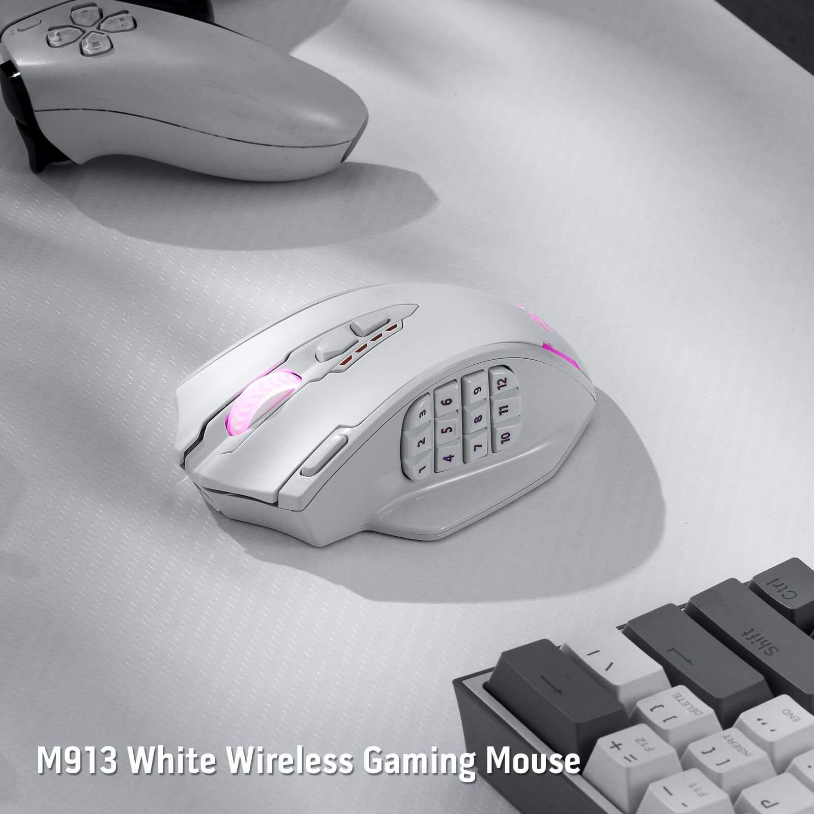 Redragon M913 is the first Redragon wireless MMO gaming mouse with 12 programmable side buttons. The most perfect combo with wireless function plus side shortcuts aim for higher user experience.